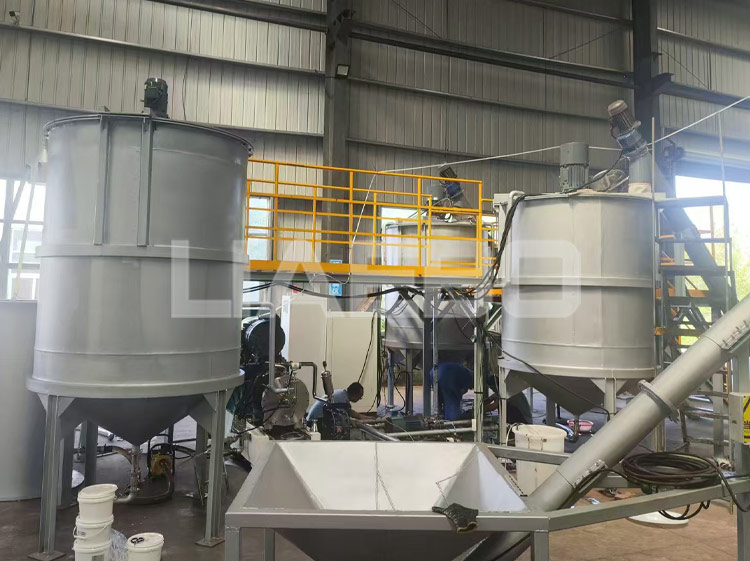 水性乙烯基高防腐涂料生產(chǎn)線(xiàn),年產(chǎn)2萬(wàn)噸成品,專(zhuān)業(yè)電廠(chǎng)防腐涂料,工藝要求高,生產(chǎn)過(guò)程對(duì)溫度、分散力度都有特別的要求,設(shè)備設(shè)計(jì)附加分散盤(pán)釜內(nèi)升降,滿(mǎn)足不同層面固液混合需求,解決分散不均衡的問(wèn)題。自動(dòng)配料、粉體隔層投放、釜蓋密封設(shè)計(jì),解決了配料、品質(zhì)、環(huán)保、安全等一系列重要問(wèn)題。