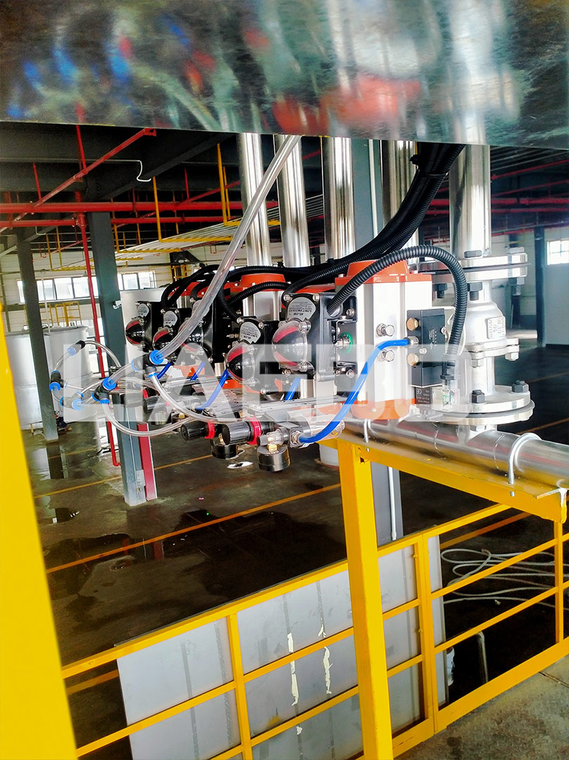 水性乙烯基高防腐涂料生產(chǎn)線,年產(chǎn)2萬噸成品,專業(yè)電廠防腐涂料,工藝要求高,生產(chǎn)過程對溫度、分散力度都有特別的要求,設(shè)備設(shè)計(jì)附加分散盤釜內(nèi)升降,滿足不同層面固液混合需求,解決分散不均衡的問題。自動(dòng)配料、粉體隔層投放、釜蓋密封設(shè)計(jì),解決了配料、品質(zhì)、環(huán)保、安全等一系列重要問題。