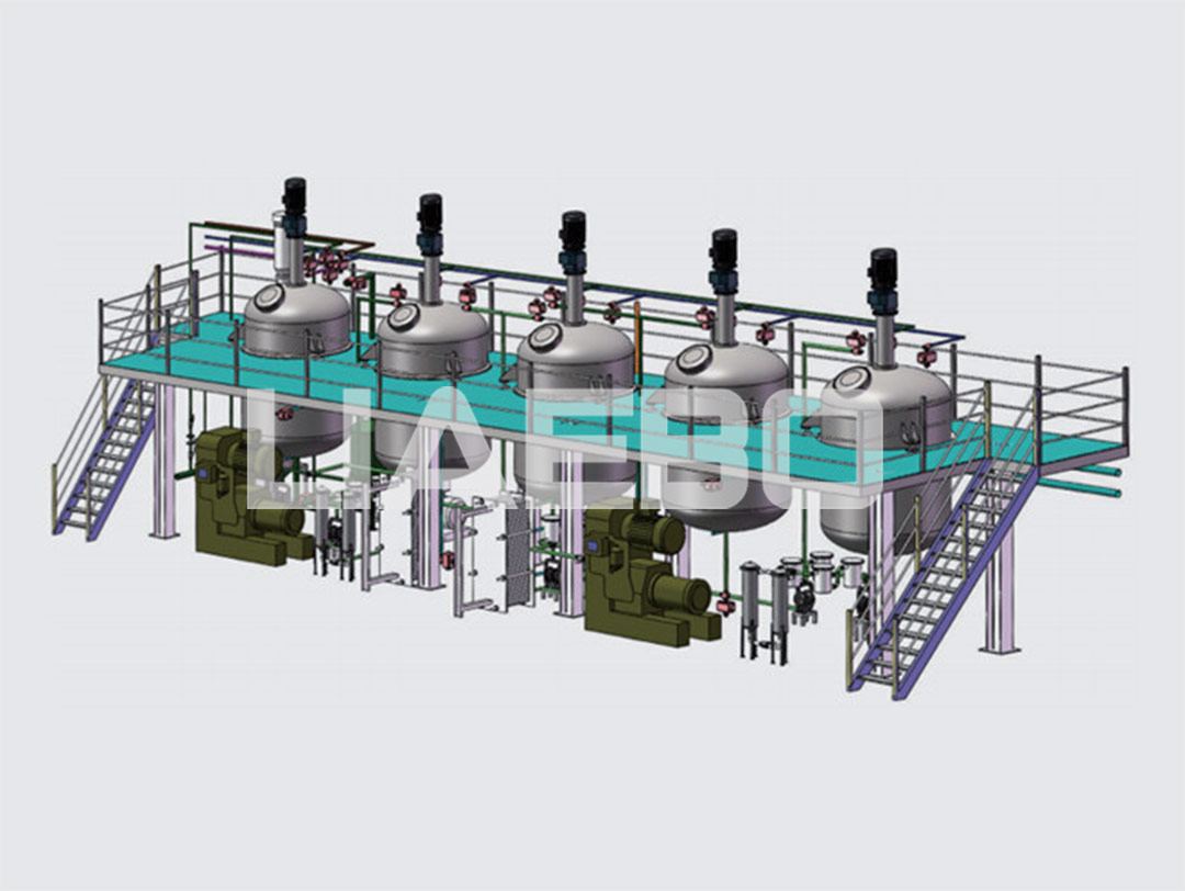 水性乙烯基高防腐涂料生產線,年產2萬噸成品,專業電廠防腐涂料,工藝要求高,生產過程對溫度、分散力度都有特別的要求,設備設計附加分散盤釜內升降,滿足不同層面固液混合需求,解決分散不均衡的問題。自動配料、粉體隔層投放、釜蓋密封設計,解決了配料、品質、環保、安全等一系列重要問題。